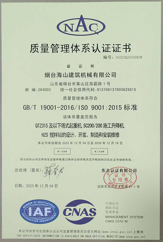 煙臺海山建筑機械有限公司坐落于山東省煙臺市高新技術開發(fā)區(qū),占地面積160000多平方米,目前擁有1200余名員工。秉承誠信·勤奮·執(zhí)著·創(chuàng)新的企業(yè)發(fā)展理念,以人才·質量·管理·服務為企業(yè)發(fā)展途徑...